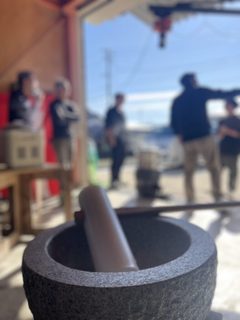 先日は予行演習を行い、実際にもち米を蒸してついてみました。